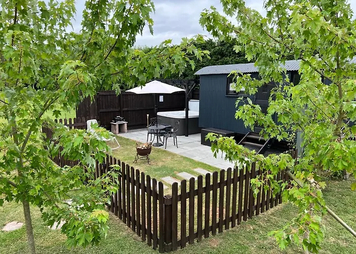 Nacházející se 30 minut chůze od centra města Wells, apartmán Shepherds Hut With Hot Tub obsahuje rovnou střechu k opalování, sluneční terasu a místo na piknik. Apartmán je vzdálen 6 km od Chalice Well a 7 km od Opatství Glastonbury.